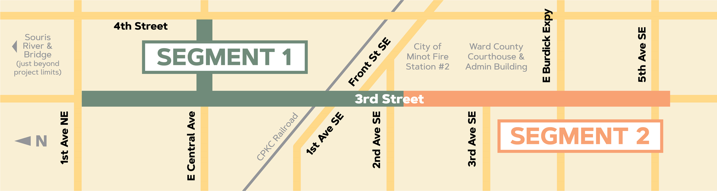 The City of Minot is planning street improvements along 3rd Street and Central Avenue in two segments: